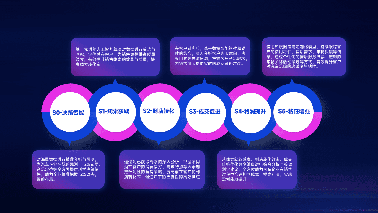 通过拓宽潜在客户来源、、优化线索分配并提高到店转化率,,以增强销售效率。。。同时,,,利用线索数据不断优化分析模型,,,有效提升转化率,,,扩大营销影响力。。